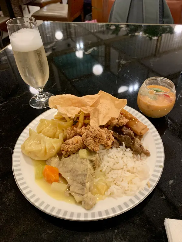 라운지의 꽃은 단연 음식이다. 핑거푸드 스타일의 가벼운 에피타이저부터 든든한 메인 요리, 달콤한 디저트까지 다양한 메뉴가 준비되어 있었다. 특히, 아시아 음식 위주로 구성된 점이 인상적이었다.