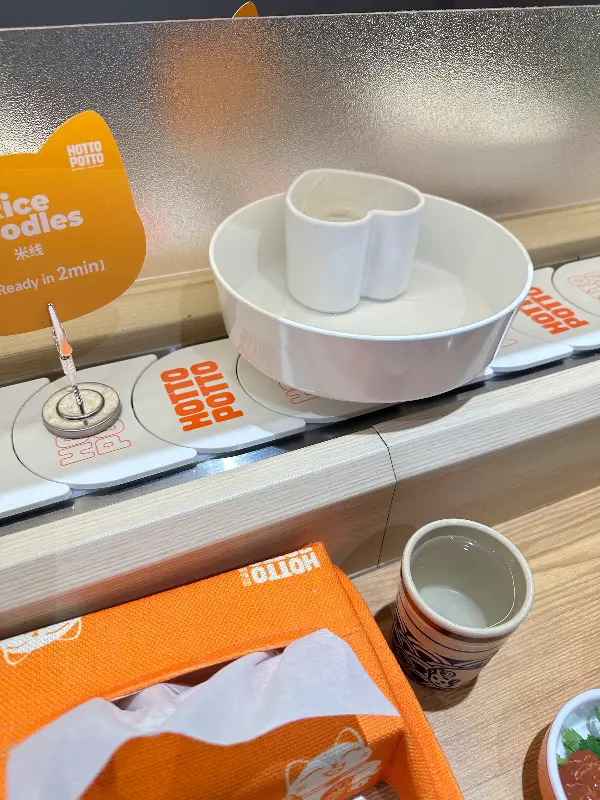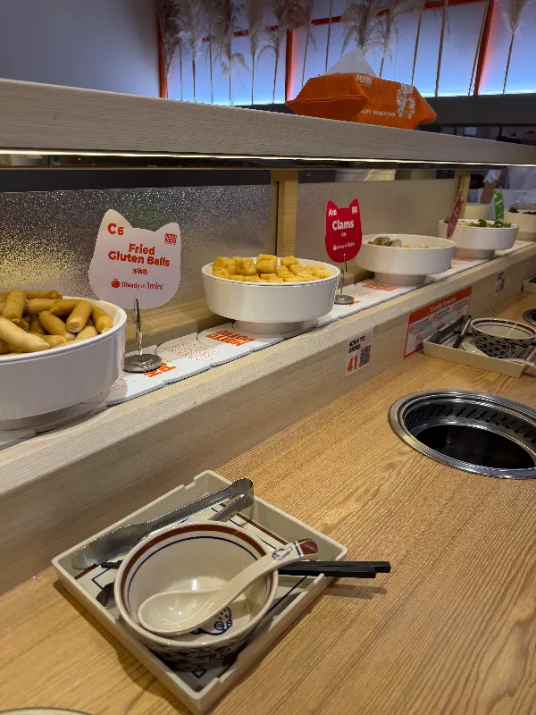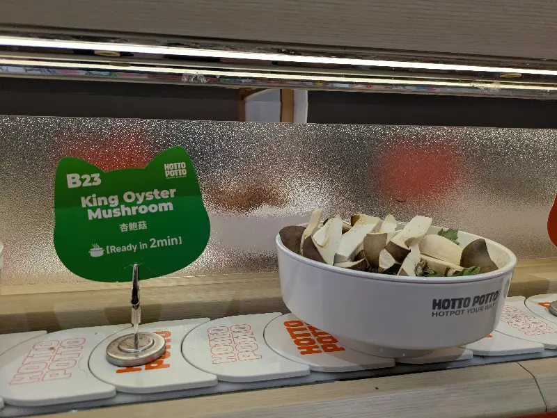 Hotto Potto에 들어서면 가장 먼저 눈에 띄는 것은 회전 레일 위에 끝없이 펼쳐진 다채로운 식재료들이다. 신선한 채소, 쫄깃한 면, 다양한 종류의 버섯, 그리고 훠궈의 핵심인 고기까지, 없는 게 없다. 마치 보물찾기를 하는 듯한 설렘을 느끼며, 어떤 재료들을 조합해 나만의 훠궈를 만들어볼까 행복한 고민에 빠진다. 리뷰에서처럼 “재료가 꾸준히 나오니까 그릇에…” 부족할 틈 없이 채워지는 신선함이 만족스럽다.