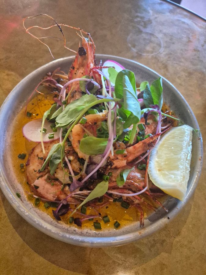 특히 구운 새우와 소고기 버거는 많은 이들이 가장 맛있었다고 언급하는 메뉴입니다. 통통하게 살이 오른 새우는 겉은 바삭하고 속은 촉촉하게 구워져 입안 가득 바다의 풍미를 선사합니다. 여기에 신선한 채소와 상큼한 레몬 한 조각이 더해져, 맛의 균형을 완벽하게 맞춰줍니다.
