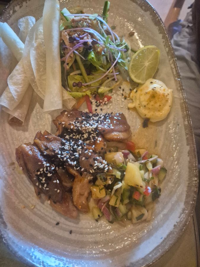 Lulu의 셰프들은 오리 요리에서도 그들의 실력을 유감없이 발휘합니다. 윤기 흐르는 오리 살코기 위에는 고소한 깨가 듬뿍 뿌려져 있어 시각적인 즐거움까지 선사합니다. 함께 제공되는 신선한 야채 샐러드와 상큼한 라임, 그리고 얇게 부쳐낸 밀전병은 오리 요리의 풍미를 한층 더 끌어올려 줍니다. 고급스러운 맛과 섬세한 플레이팅은 이곳이 단순한 바가 아님을 증명합니다.