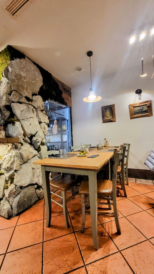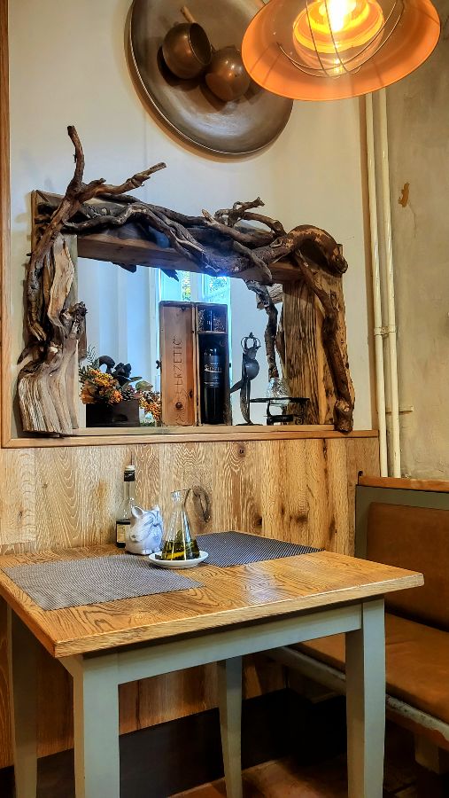벽면의 질감은 거친 듯하면서도 자연스러웠고, 테이블과 의자는 편안함을 더했다. 특히 눈에 띄는 것은 나무를 이용하여 독특하게 디자인된 거울이었다. 마치 숲속의 요정이 살 것 같은 신비로운 분위기를 자아냈다. 나는 테라스 좌석을 선택했다. 눈앞에 펼쳐진 블레드 호수의 아름다운 풍경은 그 자체로 훌륭한 애피타이저였다.
