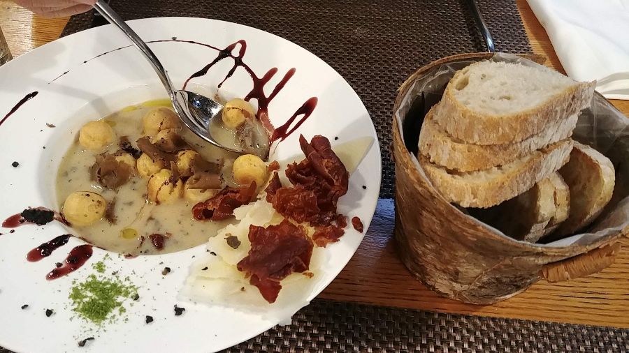 블레드 호수의 잔잔한 물결이 햇살에 반짝이는 오후, 나는 미식 탐험의 기대로 설레는 발걸음을 옮겼다. 구글 평점만 믿고 찾아간 레스토랑은, 소박하면서도 세련된 외관으로 나를 맞이했다. 문을 열자 은은하게 퍼지는 트러플 향이 코끝을 간지럽혔고, 아늑한 분위기의 공간이 기대감을 더욱 높였다.