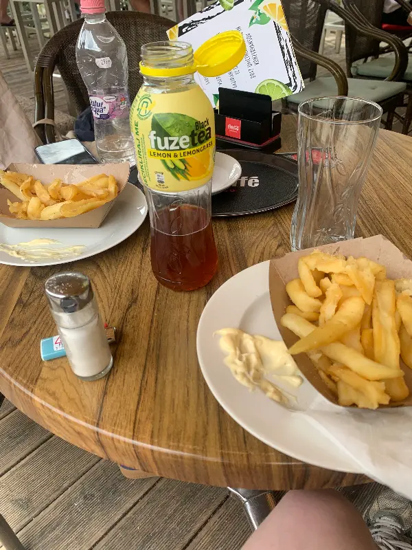 간단하게 즐길 수 있는 감자튀김은, 아쉽게도 실망스러운 맛이었습니다. 튀김용 기름만 사용했는지, 눅눅하고 기름에 찌든 맛이 강했습니다. 5유로라는 가격을 생각하면 더욱 아쉬움이 남았습니다.