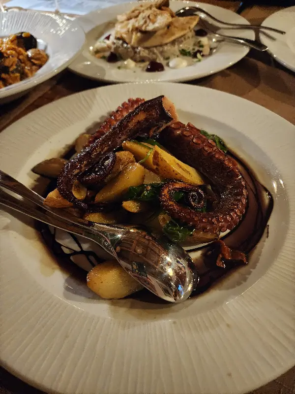 Old Cellar Bled Lakeway의 메뉴는 다채로운 맛의 향연을 선사합니다. 특히 시푸드 팬과 먹물 파스타는 많은 방문객들에게 사랑받는 메뉴입니다. 신선한 해산물이 듬뿍 들어간 시푸드 팬은 짭짤하면서도 풍부한 해산물의 맛을 느낄 수 있으며, 흑맥주와의 조합은 환상적입니다. 시원하고 청량한 흑맥주는 깔끔한 뒷맛을 선사하며, 시푸드 팬의 풍미를 더욱 깊게 만들어줍니다.