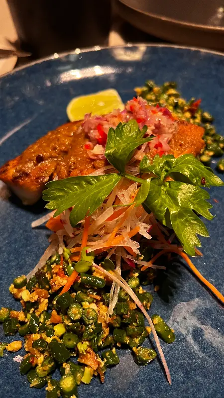 수많은 메뉴 중 고민 끝에 선택한 것은 나시고랭과 eggplant phyllo bites였다. 특히 나시고랭은 발리 여행 동안 맛보았던 음식 중 단연 최고였다. 짭짤하면서도 고소한 볶음밥은 입맛을 돋우는 데 제격이었고, 함께 제공된 닭꼬치와 계란 프라이는 풍성한 식감을 더했다. 간이 세지 않아 부담 없이 즐길 수 있었고, 밥알 하나하나에 스며든 풍미가 잊을 수 없는 맛을 선사했다.