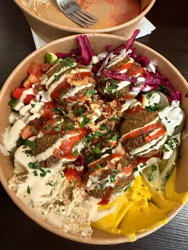 이곳의 음식은 단순히 맛있는 것을 넘어, 건강함까지 고려한 완벽한 한 끼를 제공한다. 이미지2와 이미지3에서 볼 수 있듯이, 팔라펠 포케는 신선한 채소와 다양한 토핑으로 가득 채워져 있다.