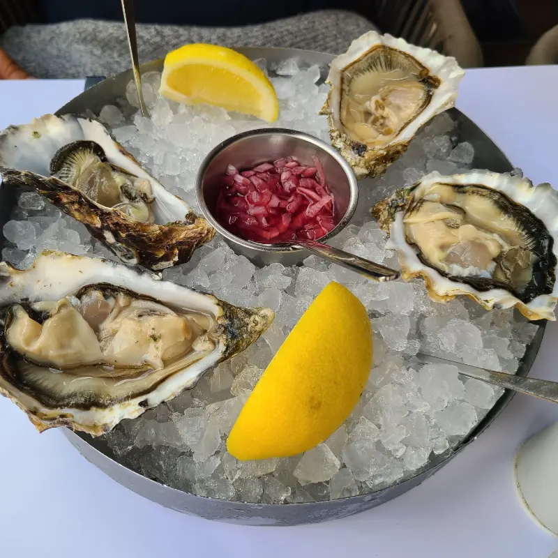 다른 테이블에서 굴을 먹는 모습을 보니, 싱싱하고 맛있어 보여 굴 6개를 주문했다. 하지만 아쉽게도 몇 개의 굴은 얼어 있거나 말라붙어 있어 기대했던 맛을 느끼지 못했다. 이 점은 조금 아쉬웠지만, 전반적인 식사 경험은 매우 만족스러웠기에 다음 방문 때는 다른 해산물 요리를 맛보기로 다짐했다.