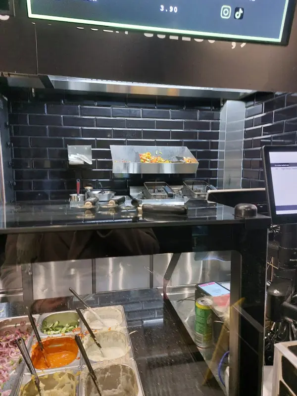 카르멜리터마르크트 바로 옆, 아담한 케밥집 앞에 도착했다. 테이블 몇 개가 놓인 작은 공간이었지만, 활기 넘치는 분위기가 나를 반겼다. 검은색 타일 벽이 인상적인 내부 (Image 1 참고)는 깔끔하게 정돈되어 있었고, 직원들은 분주하게 주문을 받고 있었다. 기대감에 부푼 나는 떨리는 목소리로 되너 케밥을 주문했다.