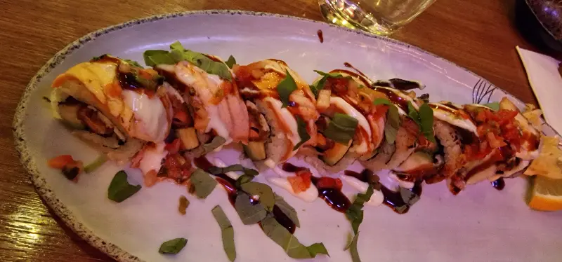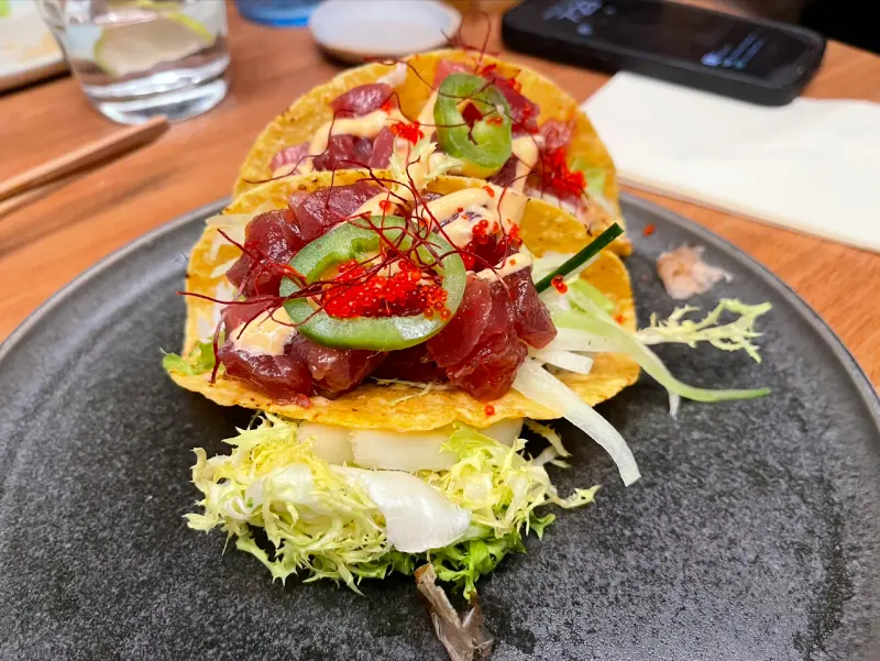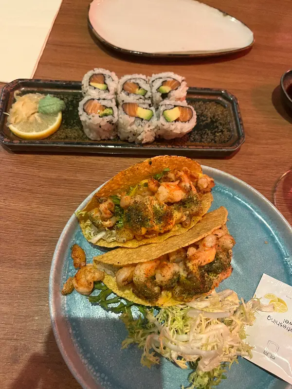 가장 먼저 등장한 것은 보기에도 아름다운 스시와 타코였다. 섬세하게 말린 스시 위에는 신선한 재료들이 얹어져 있었고, 타코는 톡톡 터지는 새우와 아삭한 채소가 조화로운 빛깔을 뽐냈다. 한 입 베어 무는 순간, 입안 가득 퍼지는 풍미에 감탄했다. 신선한 재료 본연의 맛을 살리면서도, 퓨전 요리 특유의 창의성이 돋보였다.
