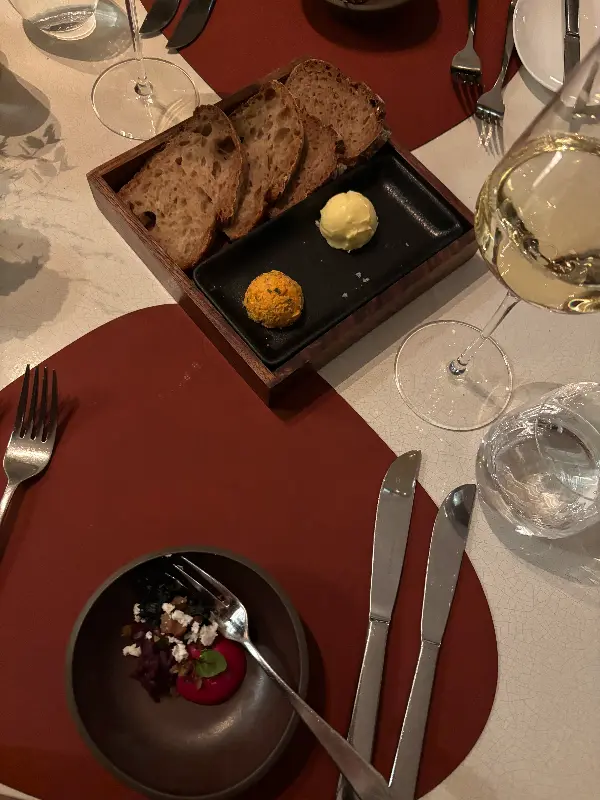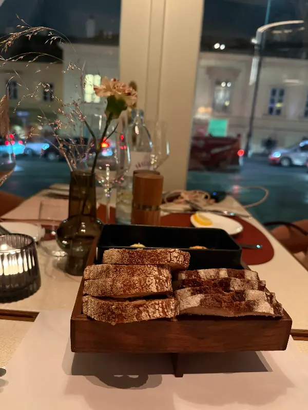 문을 열고 들어서자 리셉션에서 제니퍼가 따뜻한 미소로 맞이해 줍니다. 코트를 받아 코트룸으로 안내하는 섬세한 배려에 감동하며, 오늘 저녁 식사에 대한 기대감이 더욱 커집니다. 테이블을 안내받는 동안, 직원들의 친절한 미소와 세심한 서비스가 인상적입니다. 오스트리아 와인에 대한 자세한 설명은 와인에 대해 잘 모르는 사람도 편안하게 즐길 수 있도록 도와줍니다.