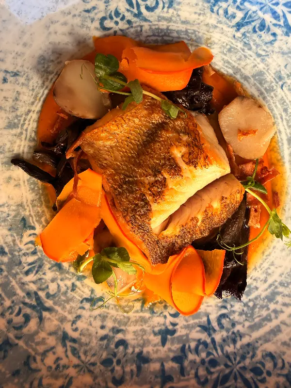 정갈하게 담겨 나온 메인 요리, 맛과 멋을 동시에 만족시켜줍니다.
