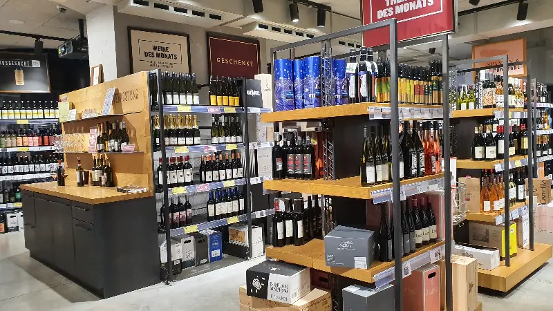 WEIN & CO 외부 모습. “2.000 Weine Im Weinshop”이라는 문구가 눈에 띈다.