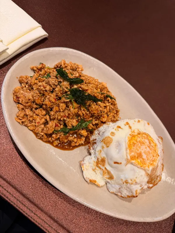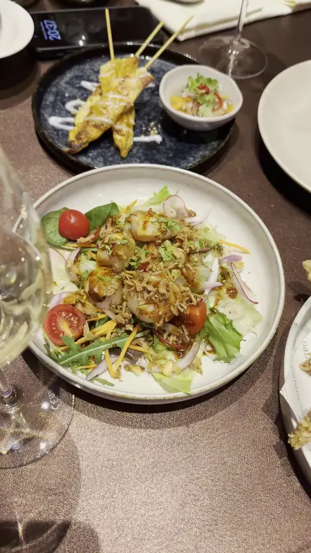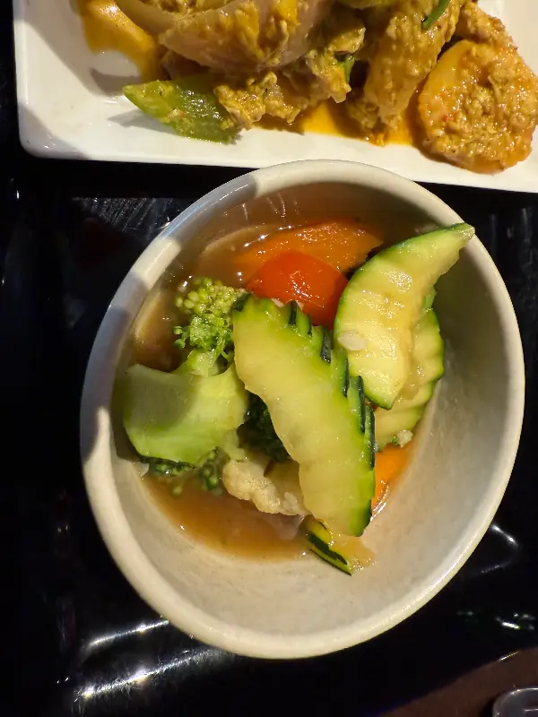 점심시간에 방문했기에 런치 세트를 주문했다. 메뉴는 샐러드, 메인 요리, 디저트로 구성되어 있었고, 각각 다양한 선택지가 있어 취향에 맞게 고를 수 있었다. 샐러드는 신선한 채소와 해산물이 어우러져 상큼했고, 메인 요리는 태국의 향긋한 향신료가 풍부하게 느껴지는 정통 태국 음식이었다. 마지막으로 나온 디저트는 달콤하면서도 시원해 입안을 깔끔하게 마무리해 주었다.
