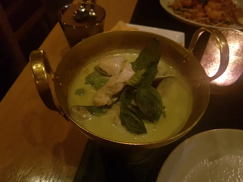 파타라에서 맛본 그린 커리, 부드러운 코코넛 밀크와 향긋한 허브가 어우러져 깊은 풍미를 자랑한다.