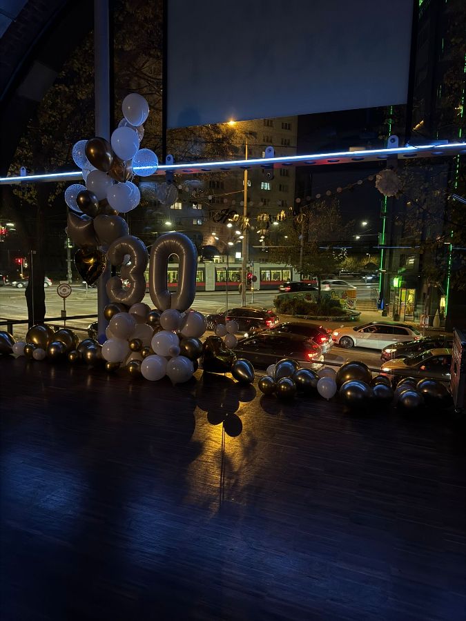 남편의 30번째 생일을 축하하기 위해 미리 준비해둔 풍선 장식이 더욱 빛을 발했습니다. 흰색, 금색, 검은색 풍선들이 조명에 반사되어 반짝이는 모습은 마치 영화 속 한 장면 같았습니다. 특히 커다란 숫자 ’30’ 풍선은 기념사진을 찍기에 완벽한 소품이었죠.