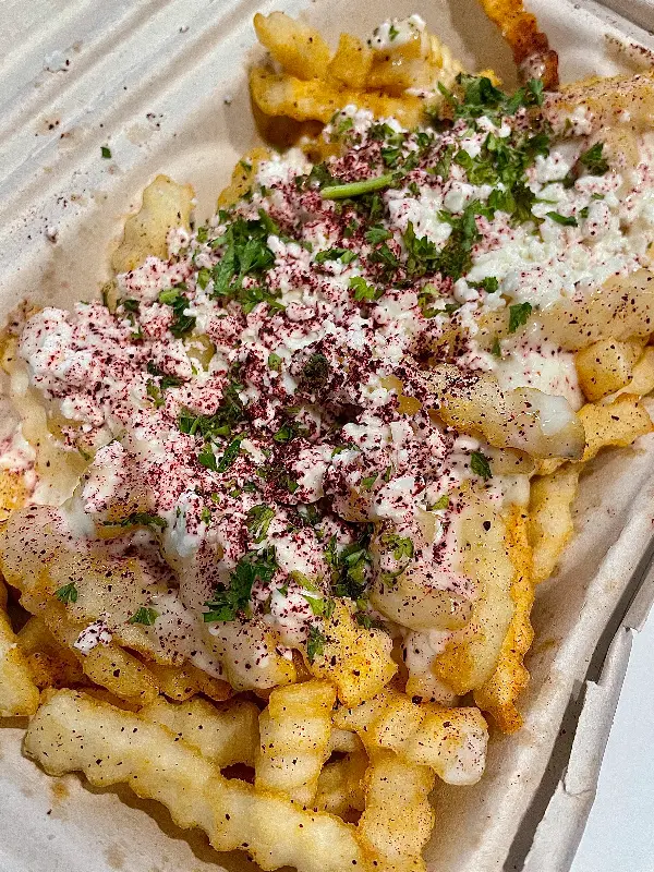 ‘Gyro Saj’에 가면 꼭 먹어봐야 한다는 그리스식 감자튀김! 짭짤하면서도 고소한 치즈와 향긋한 허브가 듬뿍 뿌려진 모습은 보기만 해도 군침이 돌았습니다. 겉은 바삭하고 속은 촉촉한 감자튀김은 그 자체로도 훌륭했지만, 치즈와 허브의 풍미가 더해지니 그야말로 ‘마성의 맛’이었습니다. 멈출 수 없는 젓가락질 끝에 어느새 접시는 깨끗하게 비워져 있었죠.