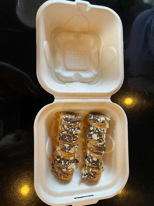 바클라바의 감동이 채 가시기도 전에, 저는 마지막 메뉴인 초콜라바를 주문했습니다. 바클라바와 마찬가지로 겹겹이 쌓인 페이스트리 사이에 초콜릿과 견과류가 가득 들어간 초콜라바는 달콤하면서도 고소한 맛이 일품이었습니다. 특히 초콜릿의 깊은 풍미는 바클라바와는 또 다른 매력을 선사하며 완벽한 마무리를 장식했습니다.