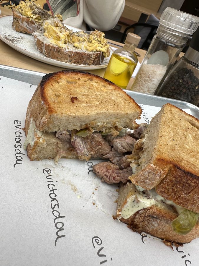 빅터의 샌드위치에서 가장 많은 찬사를 받는 메뉴 중 하나는 단연 프렌치 토스트입니다. “바깥쪽은 바삭하고 캐러멜라이즈 되어 있고, 안쪽은 부드럽게 촉촉하다”는 극찬처럼, 완벽한 겉바속촉의 식감이 입안에서 황홀경을 선사합니다. 한 방문객은 이 대비가 “쌓이지 않는다”며 극찬했는데, 이는 곧 맛의 조화가 예술적이라는 뜻이겠죠. 따뜻하게 구워진 토스트 위에 버터 한 조각이 사르르 녹아내리는 모습은 그 자체로 한 폭의 그림입니다. 은은한 단맛과 고소함이 어우러져 기분 좋은 아침 식사 경험을 선사하며, “꼭 다시 올 거예요”라는 다짐을 하게 만듭니다.