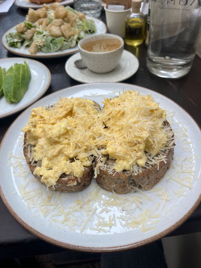 굿모닝 번과 카치오 페페 스크램블 에그: 든든하고 맛있는 아침 식사