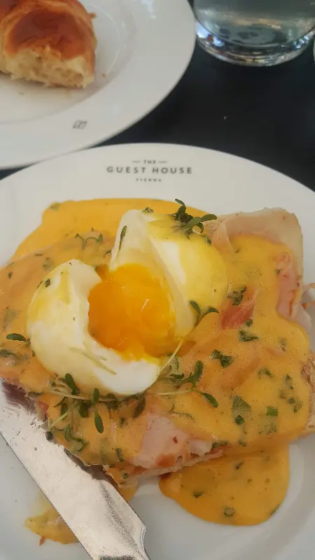 오스트리아 빈, 알베르티나 미술관 근처의 아침은 늘 설렘으로 가득하다. 낡은 마차가 지나가는 소리와 함께, 오늘 하루를 특별하게 만들어 줄 브런치를 찾아 나섰다. 여러 후기들을 통해 눈여겨봐 두었던 “게스트하우스”는 도심 속 작은 오아시스 같은 공간이었다. 아침 햇살이 부드럽게 쏟아지는 테라스 자리는 이미 만석이었지만, 실내 또한 아늑하고 편안한 분위기가 매력적이었다.