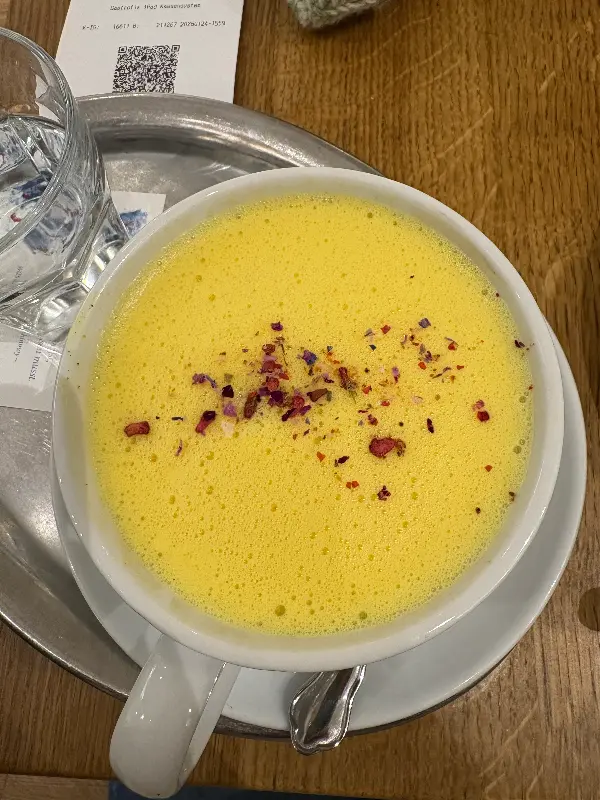 강황 라떼를 한 모금 마시니, 은은한 강황 향이 입안 가득 퍼졌다. 부드러운 우유와 조화롭게 어우러져 몸과 마음을 따뜻하게 녹여주는 듯했다. 스펠트 스파이스 케이크는 촉촉하고 부드러웠다. 은은한 향신료 향이 더해져 독특하면서도 매력적인 맛을 냈다.