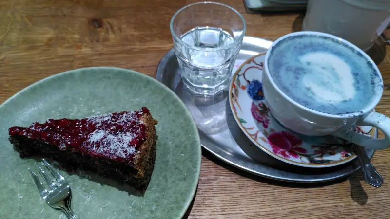 양귀비씨드 케이크는 촉촉하고 맛있었다. 다른 곳에서는 흔히 마른 케이크를 접하게 되는데, 이곳의 케이크는 촉촉함을 유지하고 있어 더욱 좋았다. 크리슈나 라떼는 처음 보는 음료였는데, 정말 특별한 간식이었다. 새로운 맛을 경험하는 즐거움은 언제나 나를 설레게 한다.