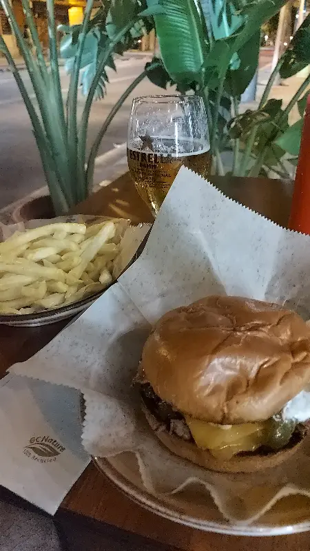 드디어 기다리고 기다리던 버거가 나왔다. 나는 평소 버거를 즐겨 먹는데, 이곳의 ‘오클라호마 버거’는 바르셀로나에서 맛본 버거 중 단연 최고였다. 완벽하게 익은 육즙 가득한 패티, 부드러운 빵, 신선한 재료들의 조화는 환상적이었다. 특히, 테네리토만의 특제 소스는 버거의 풍미를 한층 더 끌어올리는 비장의 무기였다. 한 입 베어 물자마자 입안 가득 퍼지는 육즙과 풍미에 감탄을 금치 못했다. 8.90유로라는 가격이 전혀 아깝지 않았다.