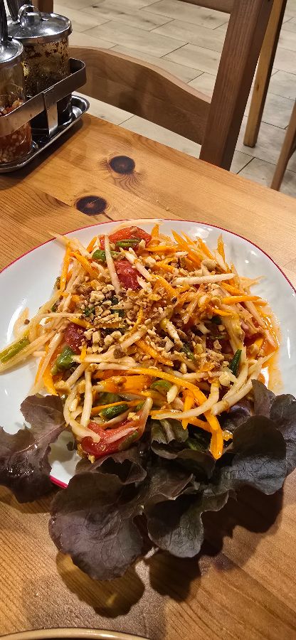 선샛 타이는 팟타이와 파낭 카레 외에도 다채로운 태국 요리로 미식가들의 입맛을 사로잡는다. 매콤한 똠얌부터 완벽한 균형의 팟타이, 그리고 든든한 누들 수프까지, 모든 요리에는 주방장의 정성과 열정이 고스란히 담겨 있다. 특히 완탕면은 방문객들의 극찬을 받는 메뉴 중 하나다. 맑고 깊은 국물은 전혀 짜지 않고 은은한 감칠맛이 일품이며, 속이 꽉 찬 부드러운 완탕과 쫄깃한 바비큐는 완벽한 조화를 이룬다. 파파야 샐러드는 상큼하고 아삭한 식감으로 입맛을 돋우는 역할을 톡톡히 한다. 늦게 나오더라도 그 맛을 포기할 수 없어 기다리게 되는 마성의 샐러드다. 신선한 재료들로 만들어진 샐러드는 태국 음식 특유의 매콤새콤한 맛을 선사하며, 고소한 땅콩 가루가 뿌려져 식감의 즐거움까지 더한다.