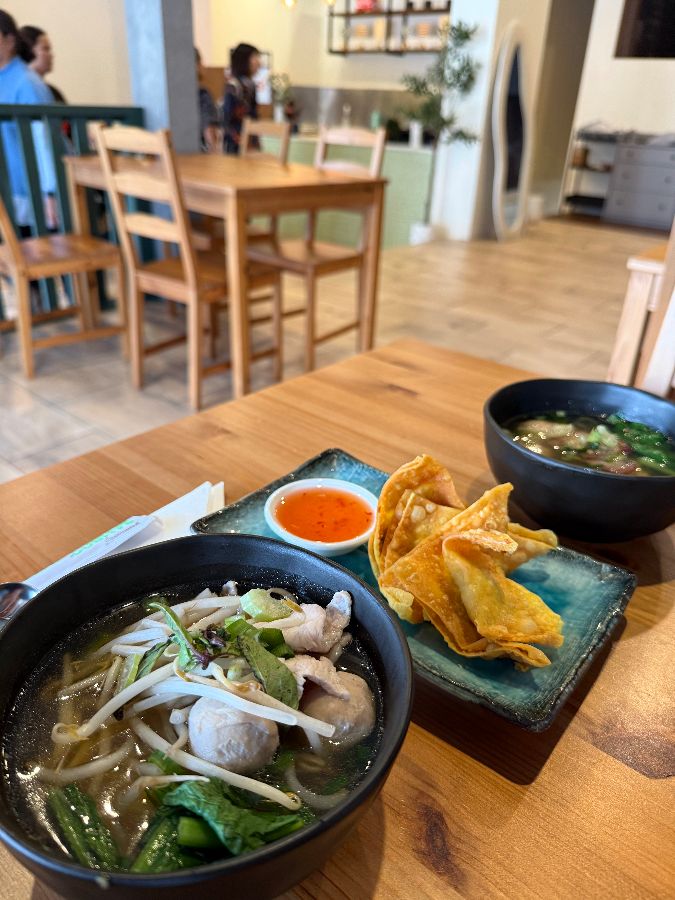 신선한 채소와 함께 큼직한 새우가 올라간 새우 롤 역시 애피타이저로 완벽한 선택이다. 톡톡 터지는 새우의 식감과 아삭한 채소, 그리고 새콤달콤한 소스의 조화는 입맛을 돋우는 데 부족함이 없다. 볶음면 두 접시와 국수 한 접시, 고기 요리 한 접시를 주문해도 모든 음식이 맛있었고 양도 적당했다는 평가는 선샛 타이가 어떤 메뉴를 선택하더라도 실패하지 않는 곳임을 증명한다. 모든 음식은 신선한 재료로 만들어지며, 빠르고 친절한 서비스 덕분에 기다림 없이 맛있는 식사를 즐길 수 있다.