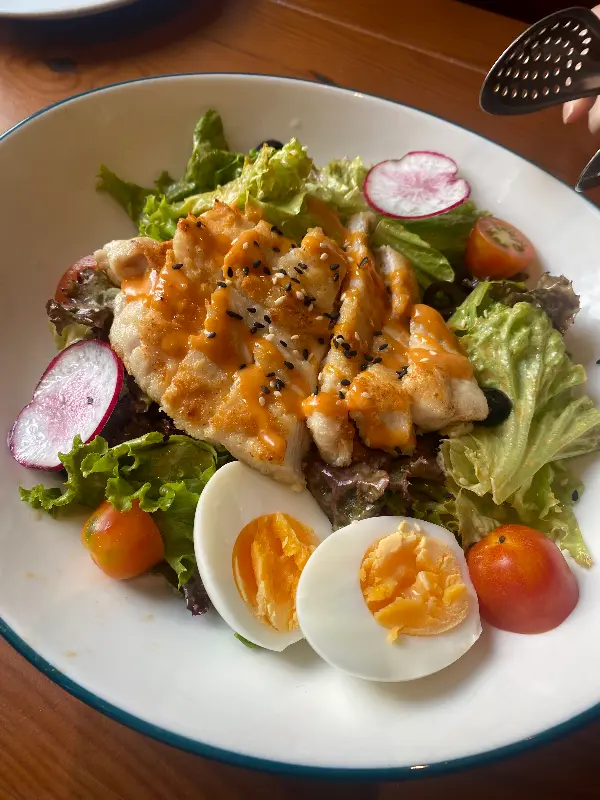 바삭한 빵과 신선한 야채의 만남, 샐러드는 식사의 훌륭한 동반자