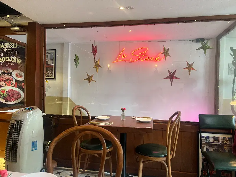 Le Steak의 시그니처 네온사인, 아늑한 분위기를 더하다