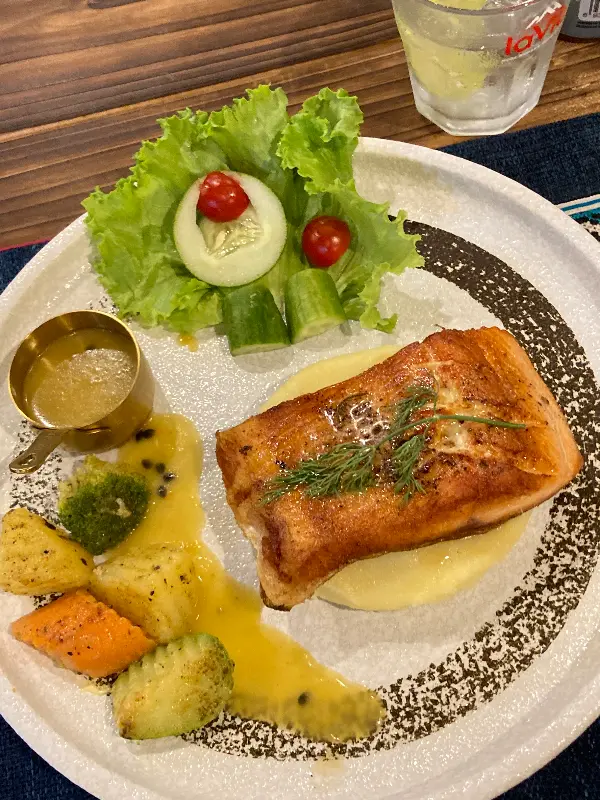 잠시 후, 테이블 위로 커다란 핫팟이 등장했다. 붉은 빛깔의 연어와 싱싱한 채소들이 푸짐하게 담겨 있었다. 핫팟의 따뜻한 김이 코끝을 간지럽혔고, 입안에는 벌써부터 군침이 돌았다. 국물을 한 입 맛보니, 시원하면서도 깊은 맛이 느껴졌다. 연어는 부드럽고 고소했으며, 채소들은 신선하고 아삭했다.