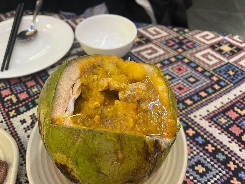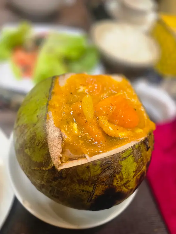코코넛 안에 담겨 나오는 카레는 맛과 멋을 동시에 사로잡았습니다.