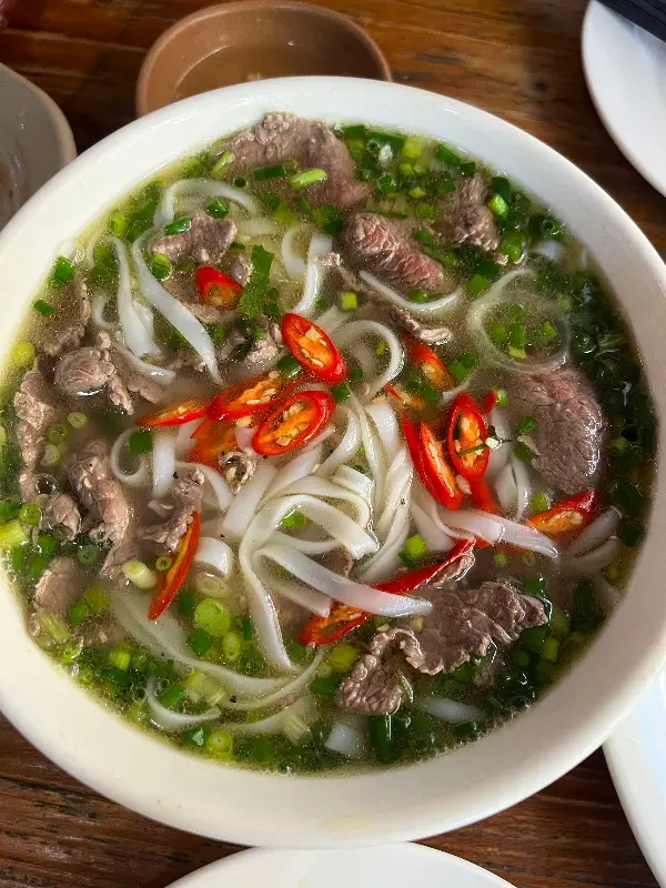 국물 맛 또한 다른 곳과는 차원이 달랐습니다. 깊고 진한 육수는 속을 따뜻하게 데워주었고, 쌀국수 면과의 조화는 완벽했습니다. 한 모금 마실 때마다 온몸에 퍼지는 따스함은 지친 몸과 마음을 부드럽게 감싸 안아주는 듯했습니다. 쌀국수 면은 부드럽고 쫄깃했으며, 국물은 깊은 감칠맛을 자랑했습니다.