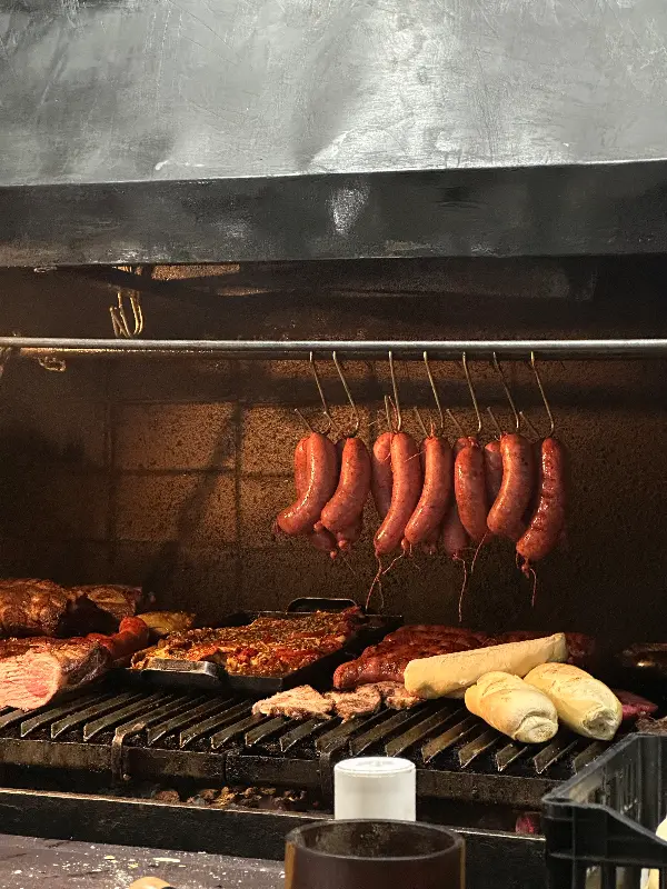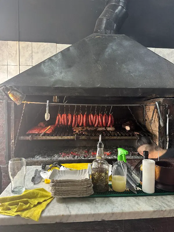 가게 앞에 다다르자, 숯불 위에서 지글거리는 초리조와 스테이크의 향이 코를 찌릅니다. 마치 오랜 친구를 만난 듯 친근한 느낌입니다. 가게는 아담하지만 활기가 넘치고, 벽돌로 쌓아 올린 화로에서는 쉴 새 없이 고기가 구워지고 있습니다.