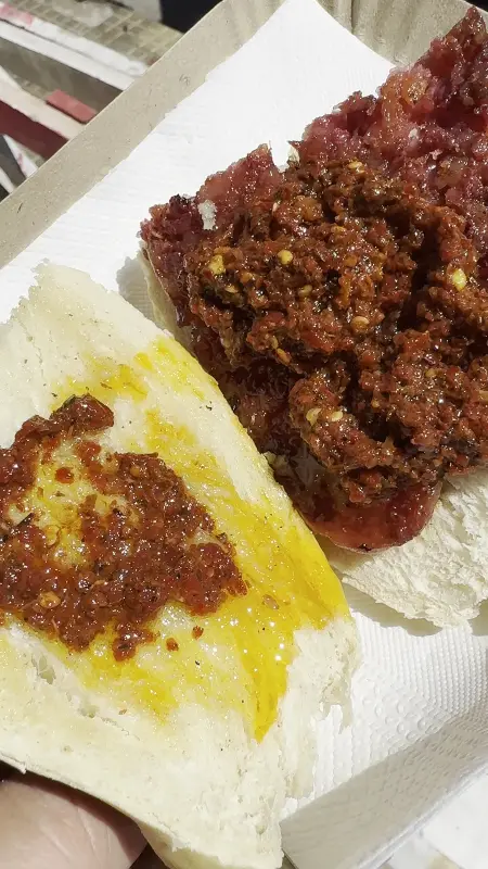 초리판은 겉은 바삭하고 속은 부드러운 빵 사이에 육즙 가득한 초리조가 듬뿍 들어있습니다. 한 입 베어 무니, 톡 터지는 초리조의 육즙과 은은한 숯불 향이 입안 가득 퍼져 나갑니다. 곁들여 나오는 치미추리 소스를 듬뿍 뿌려 먹으니, 매콤하면서도 상큼한 풍미가 더해져 더욱 맛있습니다.