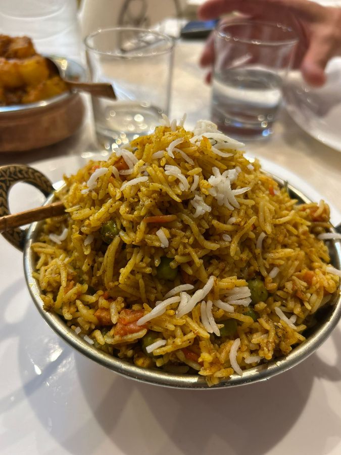 채식주의자들을 위한 메뉴도 풍성합니다. 채식 비리야니와 지라 알루(Image 6) 등 다양한 채식 옵션이 준비되어 있어, 어떤 식성을 가진 방문객이든 만족스러운 식사를 할 수 있습니다. 큼직하게 썰린 감자가 지라(커민) 향신료와 어우러져 노릇하게 볶아진 지라 알루는 고소하면서도 짭짤한 맛이 일품입니다.