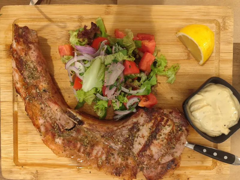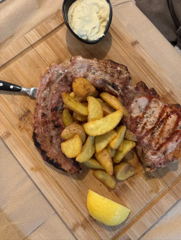 나는 돼지고기 스테이크 XL을 주문했다. 잠시 후, 뜨거운 김을 내뿜으며 등장한 스테이크는 그 웅장한 자태에 감탄을 금치 못하게 했다. 나무 도마 위에 놓인 스테이크는 윤기가 자르르 흐르고 있었고, 겉은 바삭하게 구워져 있었지만 속은 촉촉함을 유지하고 있었다.
