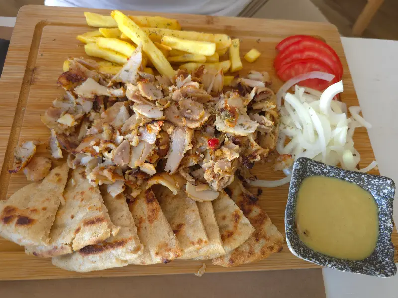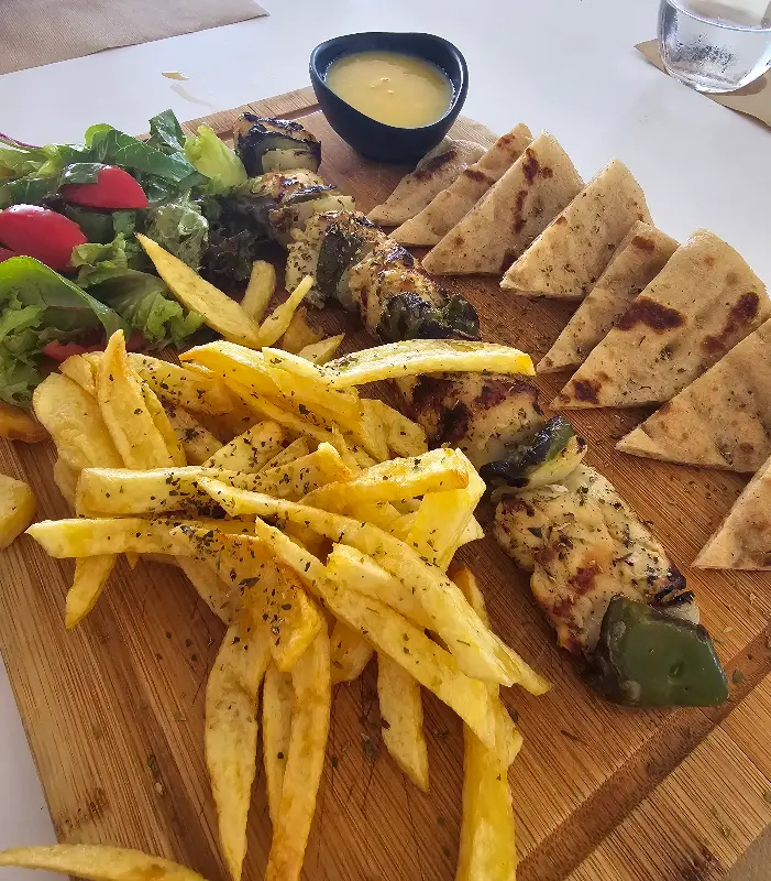 자리에 앉아 메뉴판을 펼쳐보니, 정말 다양한 음식들이 눈길을 사로잡았다. 전통 그리스 음식부터 피자, 파스타, 버거까지, 없는 게 없을 정도였다. 마치 작은 세계 음식 박람회에 온 듯한 기분이었다. 섬에서 5일 동안 매일 이 곳에서 식사를 했다는 후기가 있을 정도니, 그 다양한 메뉴에 대한 기대감은 더욱 커져갔다. 우리는 한참 동안 메뉴를 들여다보며 고민한 끝에, 각자 끌리는 메뉴를 하나씩 골랐다.