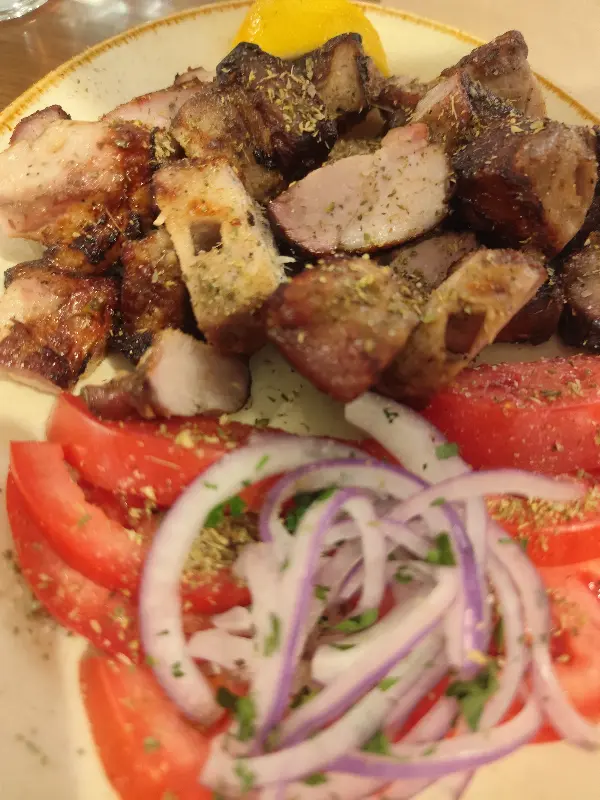 함께 간 일행은 소고기 수블라키와 산토 와인을 주문했다. 그리스 전통 음식인 수블라키는 꼬치에 꽂아 구운 고기로, 이곳에서는 특히 신선한 재료를 사용해 맛이 좋기로 유명하다.