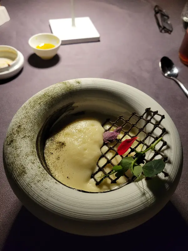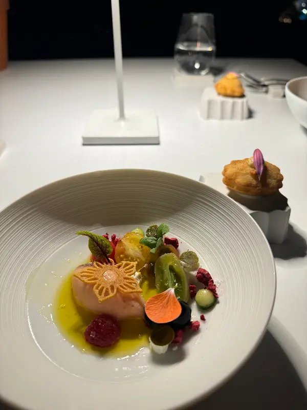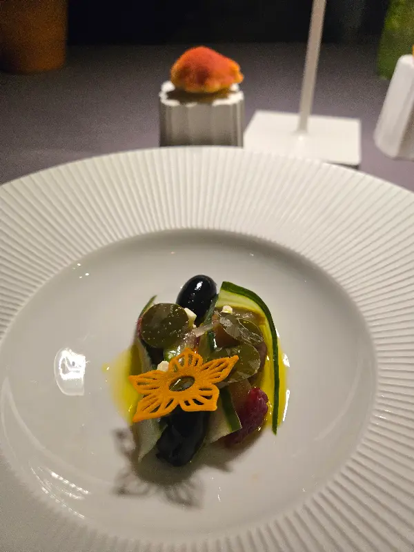 페트라 레스토랑에서는 8가지 코스로 구성된 테이스팅 메뉴를 선보입니다. 마치 미술관에서 작품을 감상하듯, 정성스럽게 준비된 요리 하나하나가 눈과 입을 즐겁게 했습니다. 플레이팅은 그야말로 예술이었고, 음식은 단순히 맛있는 것을 넘어 하나의 이야기를 담고 있는 듯했습니다.
