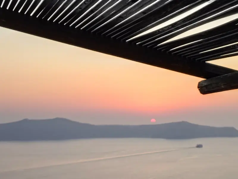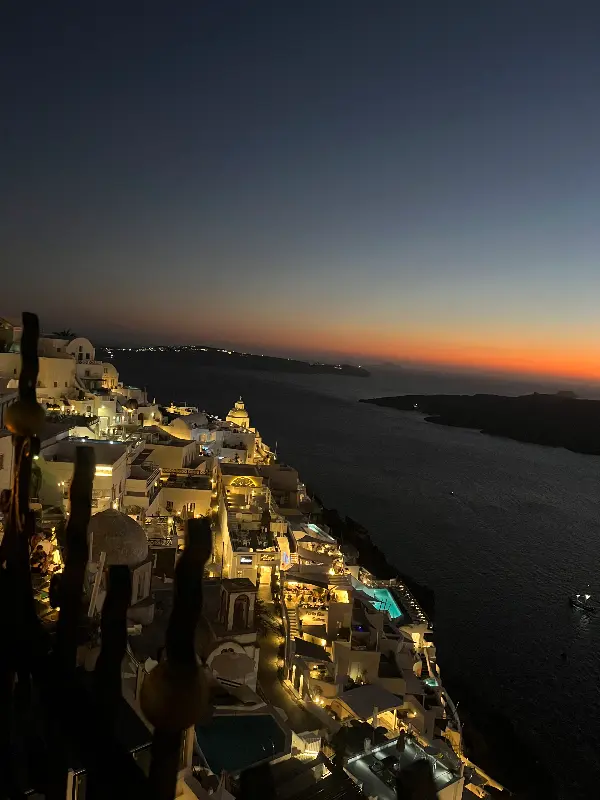 해가 지기 시작하자 하늘은 붉은색과 주황색으로 물들기 시작했습니다. 석양 아래 펼쳐진 칼데라 뷰는 더욱 아름다웠습니다. 붉게 물든 하늘과 바다를 바라보며 칵테일을 마시니 낭만적인 분위기에 흠뻑 취하게 되었습니다. PK 칵테일 바는 일몰 명소로도 유명한 곳입니다. 일몰 시간에 맞춰 방문하면 아름다운 석양을 감상하며 특별한 시간을 보낼 수 있습니다.