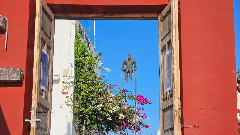산토리니, 그 이름만으로도 가슴 설레는 섬. 하얀 집들이 옹기종기 모여 있는 낭만적인 풍경, 푸른 지중해 바다가 펼쳐지는 이곳에서 특별한 시간을 보내기 위해 PK 칵테일 바를 찾았습니다. 좁다란 골목길을 따라 걷다 보니 차이나타운을 연상시키는 독특한 대문이 눈에 띄었습니다. 예상치 못한 첫인상에 잠시 당황했지만, 문을 열고 들어서는 순간, 탄성이 절로 터져 나왔습니다.