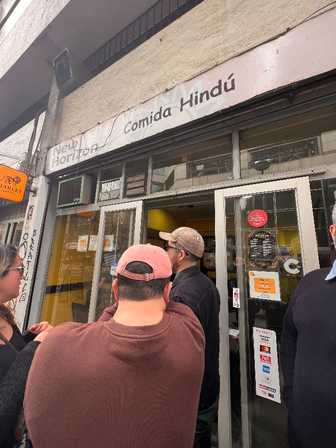 산티아고 시내, 미술관 근처를 걷다 보면, 문득 코끝을 스치는 매콤하면서도 달콤한 이국적인 향신료 냄새에 발걸음이 멈춥니다. 바로 ‘New Horizon Comida Hindú’에서 흘러나오는 향기입니다. 가게 문을 열고 들어서기 전부터 느껴지는 기대감은 낯선 곳에서의 모험을 시작하는 여행자의 마음과 같습니다. 겉모습은 소박하고 작지만, 이미 문밖까지 길게 늘어선 줄은 이곳이 단순한 식당이 아님을 증명합니다. 왁자지껄한 대화 소리와 설레는 표정으로 기다리는 사람들의 모습에서, 이들이 얼마나 이 맛을 갈망하고 있는지 고스란히 느껴집니다.