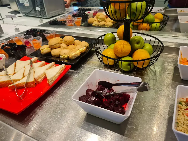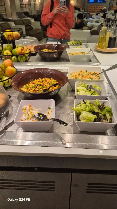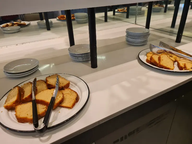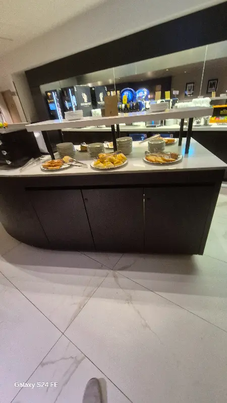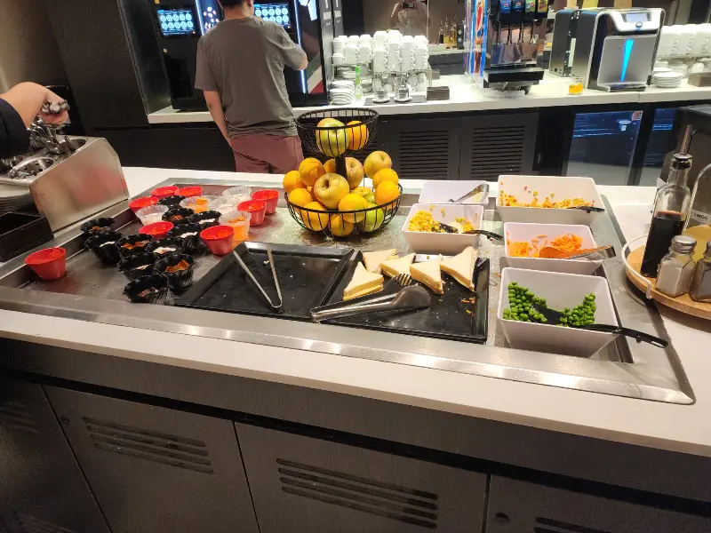 점심 또는 저녁 메뉴는 대부분 다진 소고기를 소스에 볶거나 야채와 함께 밥이나 면과 함께 제공되는 두 가지가 전부였다. 디저트 역시 젤리나 오렌지만이 놓여 있어, 선택의 폭이 매우 좁았다. 커피와 함께 제공되는 케이크와 쿠키는 모두 건조했으며, 전체적으로 음식의 질이 떨어지고 밍밍하다는 평이 지배적이다. 공항 라운지라면 더욱 다양한 선택지와 높은 품질의 음식을 기대하는 것이 당연하지만, 이곳은 그러한 기대를 충족시키지 못했다.