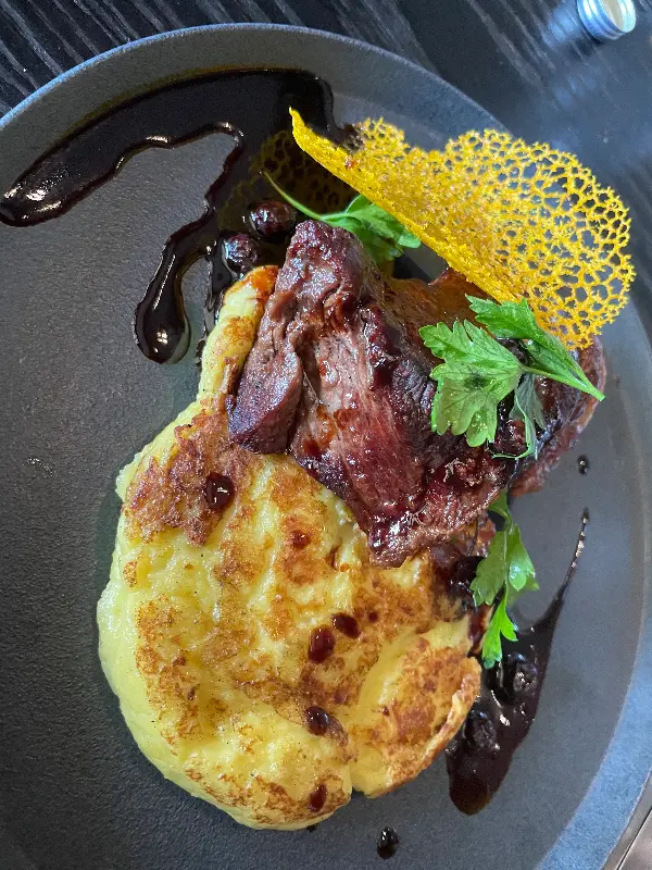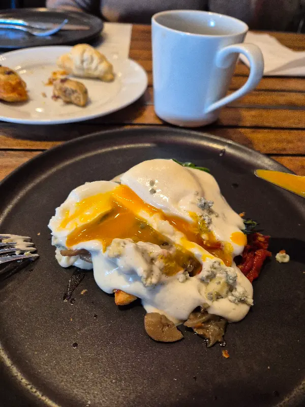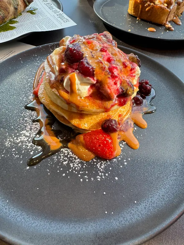 음식의 다양성은 부족했지만, 제공되는 음식 하나하나의 맛은 훌륭했습니다. 특히, 여러겹 겹쳐진 팬케이크 위에 붉은 베리류와 하얀 크림, 카라멜 소스가 얹어진 모습은 시각적으로도 훌륭했습니다. 달콤함과 상큼함이 어우러진 맛은 입안 가득 행복을 선사했습니다. 음료 또한 훌륭했고, 서비스 또한 만족스러웠습니다.