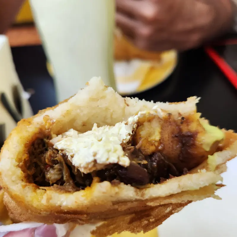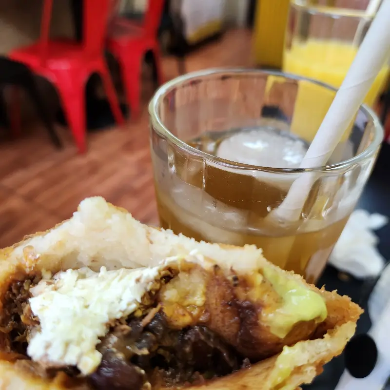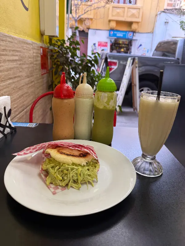 아침 식사를 위해 방문했기에, 가장 먼저 눈에 띈 것은 ‘아레파’였습니다. 메뉴판에는 다양한 종류의 아레파가 있었는데, 그중에서도 ‘레이나 페피아다’라는 아레파가 가장 인기 있다고 했습니다. 주문 즉시 만들어지는 아레파는 그 신선함이 눈으로도 느껴질 정도였습니다.