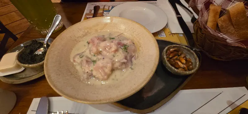 애피타이저로 나온 농어 세비체는 신선함 그 자체였습니다. 얇게 슬라이스된 농어는 입안에서 살살 녹았고, 상큼한 소스와 어우러져 완벽한 조화를 이루었습니다. 샐러드는 신선한 야채와 드레싱의 조화가 훌륭했고, 메인 요리인 농어는 겉은 바삭하고 속은 촉촉하게 구워져 나왔습니다. 곁들여진 소스 또한 농어의 풍미를 한층 더 끌어올려 주었습니다.