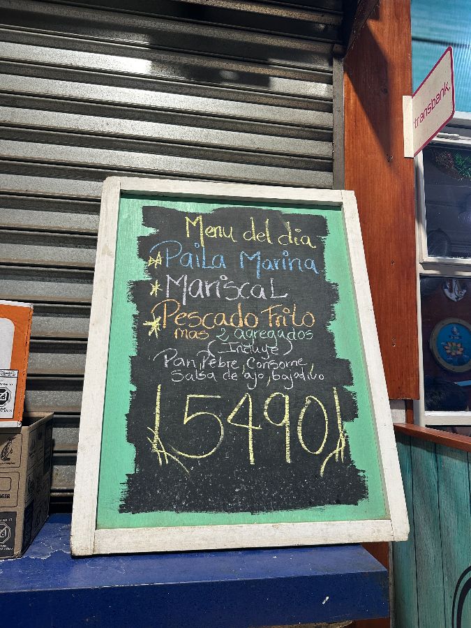 이곳의 매력은 굳이 요란한 마케팅을 하지 않아도 입소문만으로 손님들의 발길이 이어진다는 점입니다. 현지인들이 진정한 맛을 찾아 모여드는 곳, 바로 라 훌리타의 정체성입니다. 메뉴판은 마치 오랜 친구가 오늘 특별히 준비한 음식을 설명해주듯 정겹습니다. 오늘의 추천 메뉴인 ‘파이라 마리나(Paila Marina)’, ‘페스카도 프리토(Pescado Frito)’, ‘마리스칼(Mariscal)’이 칠판에 정성스럽게 적혀있는데, 합리적인 가격에 푸짐한 해산물 요리를 즐길 수 있다는 기대감에 벌써부터 마음이 설렙니다.