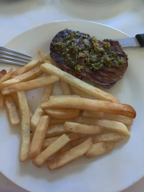 잘 구워진 스테이크는 겉은 바삭하고 속은 촉촉합니다. 육즙이 풍부하게 살아있어, 씹을 때마다 입안 가득 퍼지는 풍미는 감탄을 자아냅니다. 특히 치미추리 소스와 함께 먹으면 그 맛이 배가 됩니다. 신선한 샐러드와 함께 곁들이면 느끼함 없이 스테이크를 즐길 수 있습니다.